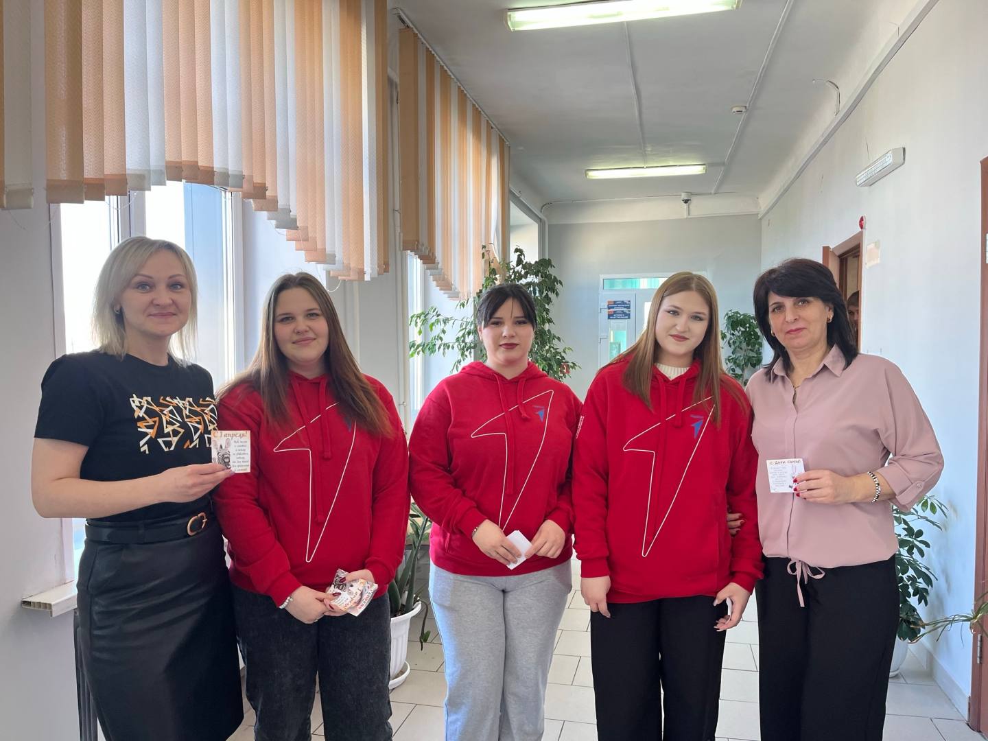 В рамках акции «Улыбка всем к лицу» наши ребята поделились своей энергией и радостью, а ещё вручили милые открытки с самыми добрыми пожеланиями — и, конечно же, самые заразительные улыбки специалистам и студентам нашего техникума! 😄💌🤗