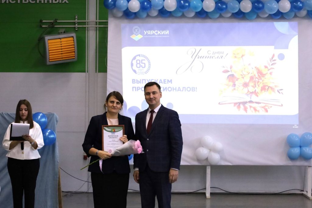 Мы гордимся тем, что сегодня были отмечены заслуги наших сотрудников. Глава Уярского района Грызунов Павел Александрович и Председатель совета депутатов Уярского района Старцев Сергей Николаевич наградили Почетными грамотами администрации Уярского района и районный Совет депутатов специалистов нашего техникума за плодотворный безупречный труд, высокий профессионализм и ответственное отношение к работе